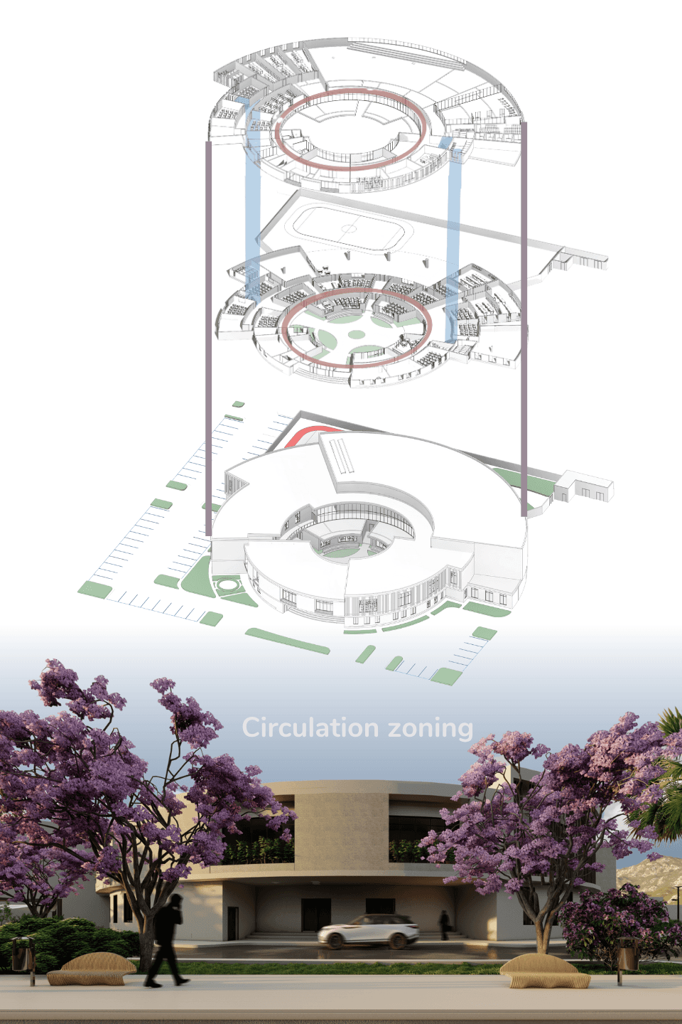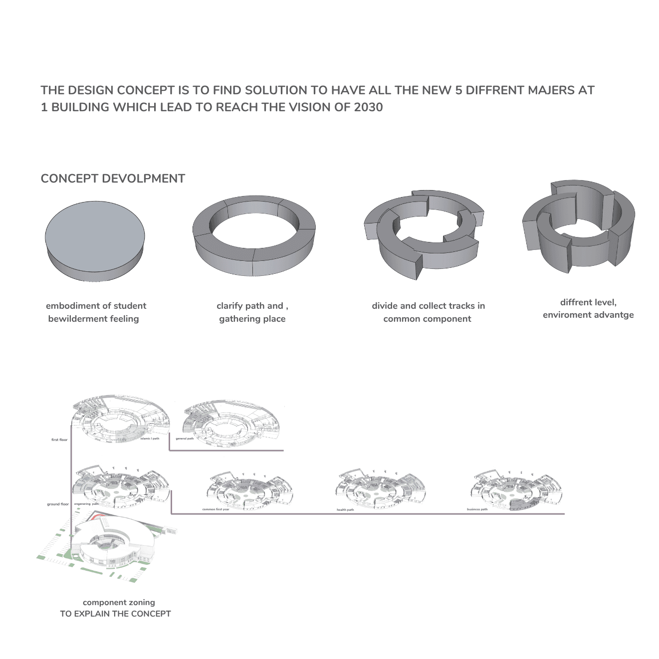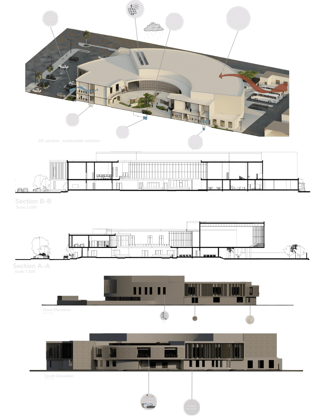 School lies and the distinctive design which is able to combine five tracks and stable environment for more than 400 student the goal for the design is to create a clear where is the deal and behavior school for the student ability to pass the difficult stage that determine his all the future by providing a school from surrounding environment which is effect the student behavior
